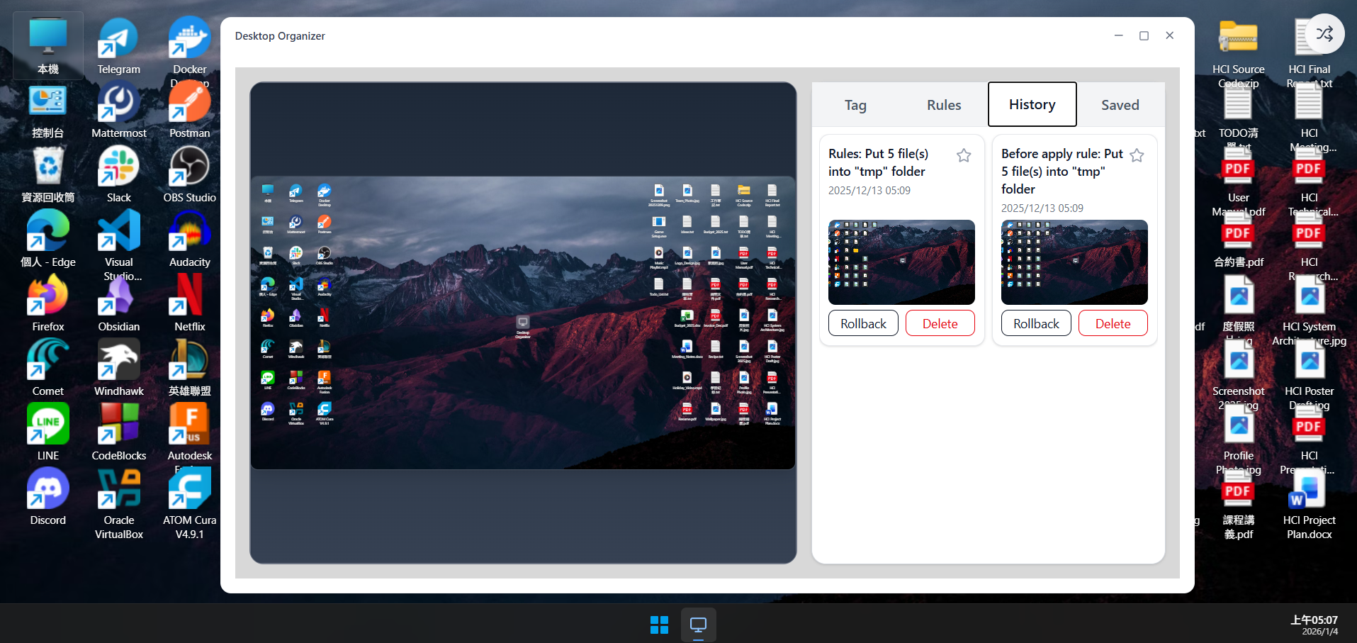 An application (web demo, React-based) designed to help organize desktop with AI-powered features